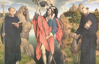São Cristóvão é padroeiro dos motoristas (e dos archeiros, moços de fretes, carregadores dos mercados, pisoeiros, negociantes de frutas, automobilistas; é invocado contra a morte súbita, as tempestades, o granizo, as dores de dentes e a impenitência final) e comemorado, pelo martirológio jeronimiano, a 25 de julho. O seu nome, Cristofóro, para nós Cristóvão, significa porta-Cristo. Foi-lhe dedicada uma Igreja, na Bitínia, a 22 de setembro de 452. O seu martírio terá ocorrido no século III, um século de muitos mártires e de grande perseguição à Igreja e aos cristãos.A lenda grega diz que ele era antropófago, da tribo dos cinéfalos (homens com cabeça de cão). Converteu-se ao cristianismo. Alistou-se no exército imperial e recusou-se a negar a sua fé. Morreu em suplícios inimagináveis.A lenda ocidental: era um gigante com a mania das grandezas. Servia só os mais importantes. Primeiro um rei que ele pensava ser o rei mais importante do mundo. Depois encontrou o Demónio e achando que era a pessoa mais importante do mundo, seguiu-se, verificando que ele se desviava sempre que via uma cruz, contornando o caminho. Perguntou-lhe porque é que se desvia da cruz, ficando a saber a referência ao crucificado-ressuscitado.Conhecendo Jesus Cristo, convenceu-se que era o maior rei que podia servir. Converteu-se. Pediu a um ermitão que o instruísse. Certo que Jesus apreciava a bondade, tornou-se transportador de pessoas num rio. Uma noite coube-lhe passar um menino, que se tornou tão pesado, obrigando-se a firmar-se bem nas pernas e com a ajuda de um cajado, com o receio real de ser derrubado. Quando chegou à margem disse ao menino que nem o mundo era tão pesado. Então o menino respondeu-lhe: “Tiveste às costas mais que o mundo inteiro; transportaste o Criador dele. Sou Jesus a quem tu serves”.O martírio foi o último testemunho que deu de Jesus Cristo.Paróquias que o têm como Padroeiro em Portugal: em Évora - Paróquia de São Cristóvão; em Lisboa Paróquia de São Cristóvão; em Viseu - São Cristóvão de Lafões; em Lamego - São Cristóvão de Nogueira (Zona Pastoral de Cinfães); em Vila Real - São Cristóvão do Douro; em Braga - Paróquia de São Cristóvão de Selho (Guimarães).